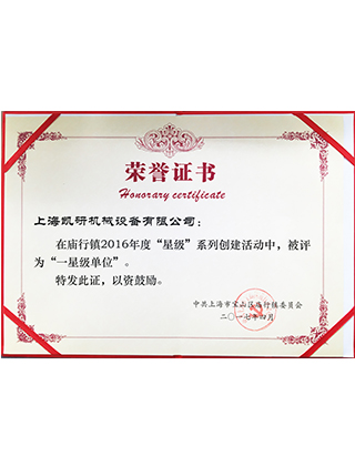 Honorary certificate of star rated unit