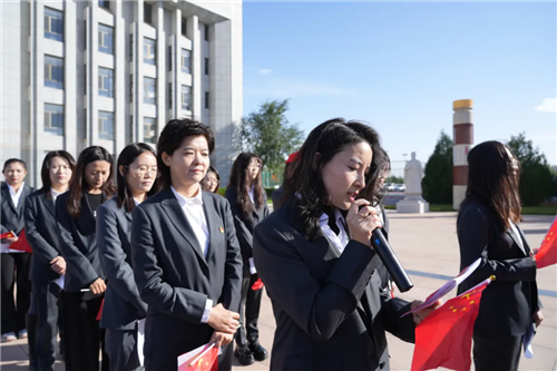 升旗儀式后,在飄揚(yáng)的五星紅旗下,全體干部職工合唱《歌唱祖國(guó)》。五星紅旗迎風(fēng)飄揚(yáng),勝利歌聲多么嘹亮……”,每個(gè)人都揮舞著手中的國(guó)旗,臉上洋溢著喜悅與自豪,歌聲激情澎湃,匯聚成一股強(qiáng)大的力量,唱出了中華民族的豪邁氣概,唱響了新時(shí)代愛國(guó)主義主旋律。活動(dòng)最后進(jìn)行了愛國(guó)主義詩歌朗誦。